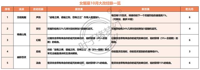 本次对女魃墓三个流派的改动主要集中在“流派特色”上。“无相鬼魃”增加了召唤怨灵叠伤害的经脉,“唤魂山鬼”强化了幻魔攻击诅咒单位的能力,“幽影怨灵”则是强化了“堕灵”的续航能力。