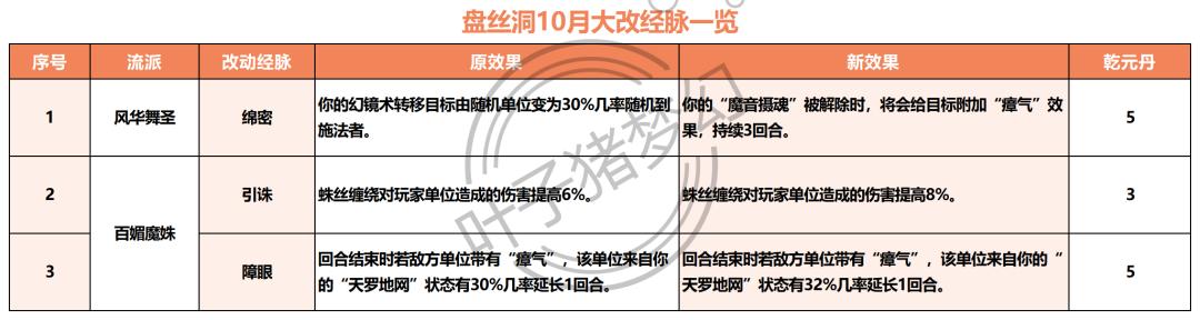 虽然本次对盘丝的改动少,但“风华舞圣”流派还是有略微的加强。这个加强主要在“点杀”能力上。除此之外,还为“百媚魔姝”略微提高了伤害能力。总之就是改了,但没有改多少,“力盘丝”想要崛起的话,只能静待花开之日了。