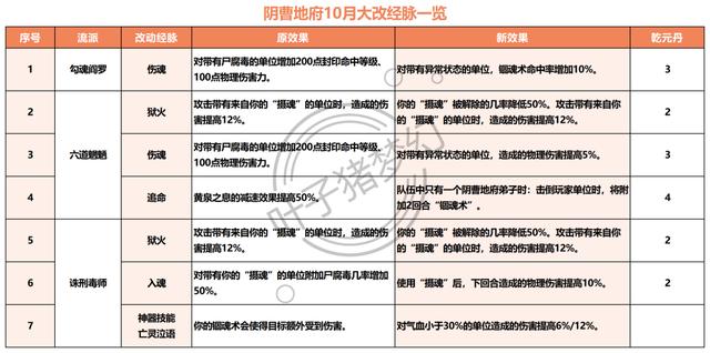 阴曹地府在本次大改中获得了“锢魂术”命中率提高的BUFF,“勾魂阎罗”流派对异常状态下的单位有10%的命中率加成,“六道魍魉”流派则可以通过击倒玩家的方式为其施加持续两回合的“锢魂术”。