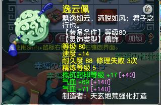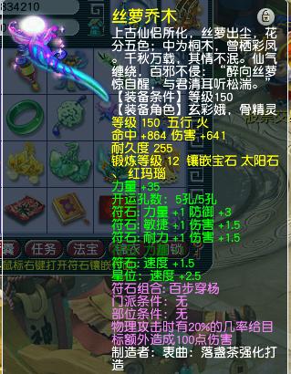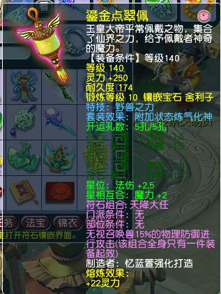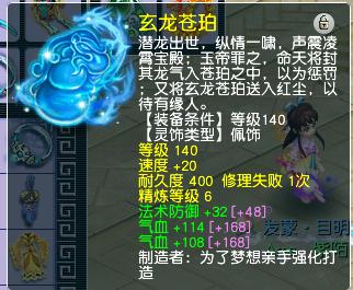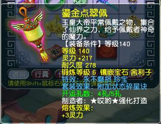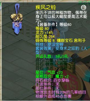 项链是140级的,附加特技野兽之力,综合灵力272。