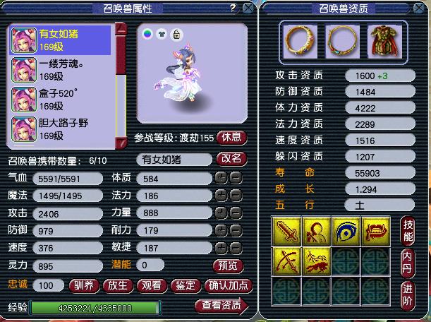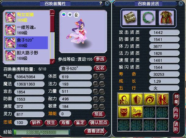 然后估算一下召唤兽,讲道理要不是猫这种都是低端宝宝了,杀神器都费劲。第一只资质爆炸但是格子太少,套装应该只有50伤,我估价3500。第二只厉害了,可惜加点不对,洗了体力做高速任务才是她的定位,算4500,110给1500。6技能壁垒资质太低,最多给个2000,毕竟豹子这个属性也就1500。整个角色总体上的估价大概5.5万左右,小赚吧,说拆开卖赚1万的有点夸张了。
