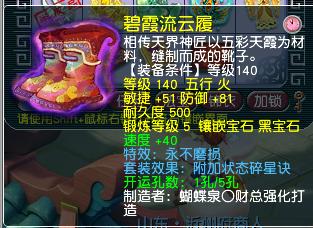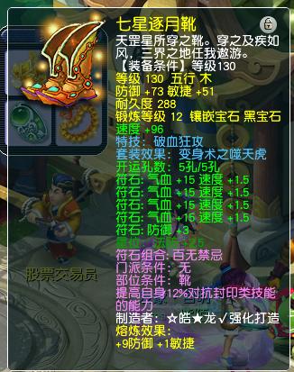 再来看一看鞋子部位的装备,130级破血狂攻特技,12段黑宝石。