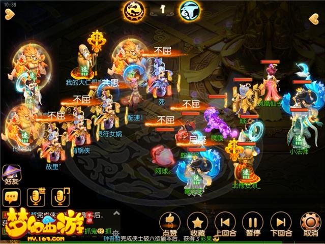 第11回合观战方方寸并没有抖中对战方的地府,对战方地府利用水清诀解除被抖的化生寺。观战方的两个月宫相继利用月凝分别控制对战方的狮驼来降低己方所承受到的伤害,此时对战方已是挺着三座“冰山”,场面相当壮观。