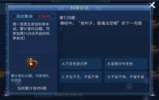 之所以说“科举考试”是这个《倩女幽魂》手游的一大亮点,是因为“科举考试”的题目,涉猎的范围很得非常的广泛,除了中国古今名著,还有东西方文化,从语文到数学,从物理到化学,从体育到各种热点赛事,从时政到动漫、破二次元,从佛学到道家学说,只有你想不到,没有它涉猎不到,所以没点文化和对热点时时关注的人,在这个时候真的是能深刻地体会什么是“举步维艰”。