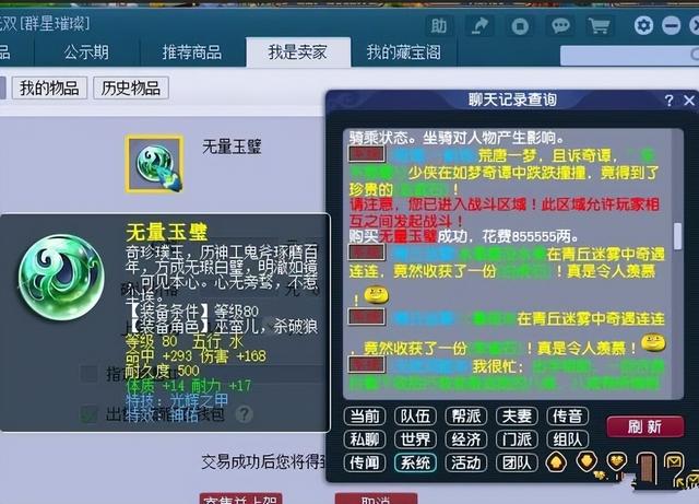 上面的这位玩家就有85万梦幻币的价格捡漏买到了这一件道具,这位玩家自己敢买这件道具是因为他的队友买了件属性差不多的,但是他的队友却花了3300,也就是这位玩家购买的这件装备可以卖到3000多。