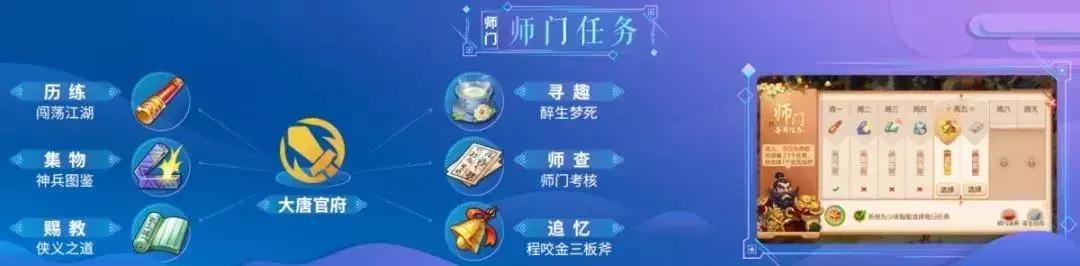 之前宝宝们提过建议,希望师门任务能有更多的可玩性,现在师门任务会迎来升级变化。师门任务将更加精简化,并且变得更有门派特色。