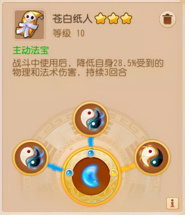 苍白纸人虽然并不能去除复活虚弱状态,但是他可以帮助玩家在持续的3回合内大幅度降低玩家受到的所有伤害,保证玩家即使受到有限治疗量的情况下,也有存活下来的机会。值得一提的是,苍白纸人四项属性推荐太阴。
