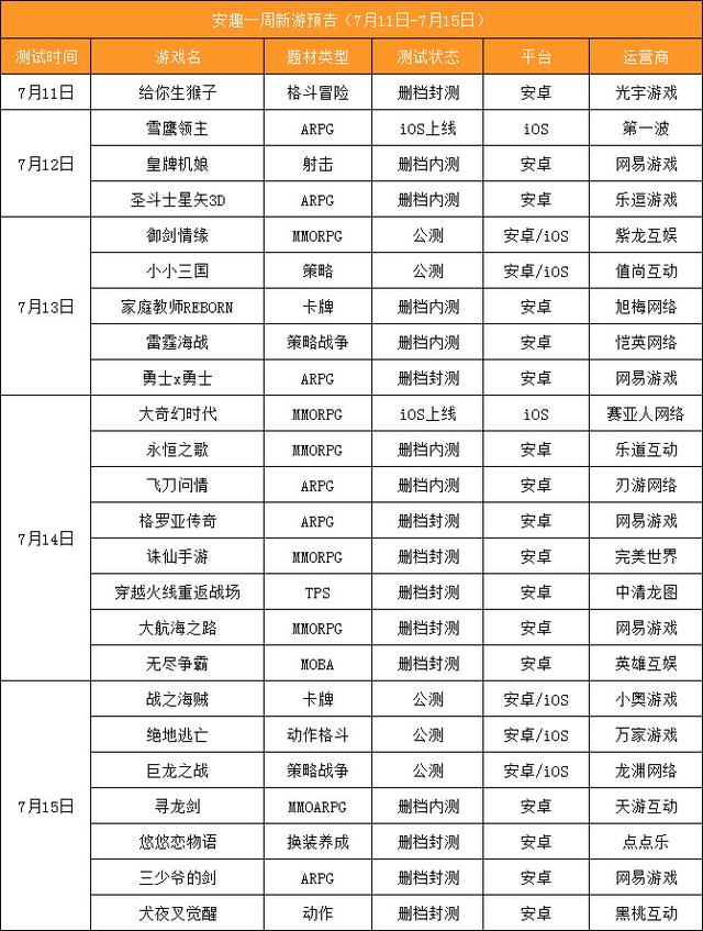 新游及时报,安趣新游预告每周一准时为大家推荐一周最新测试游戏,并通过最有趣、简单的方式告诉您什么游戏值得玩,游戏应该怎么玩。