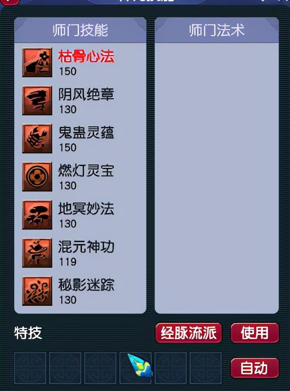 四、师门技能