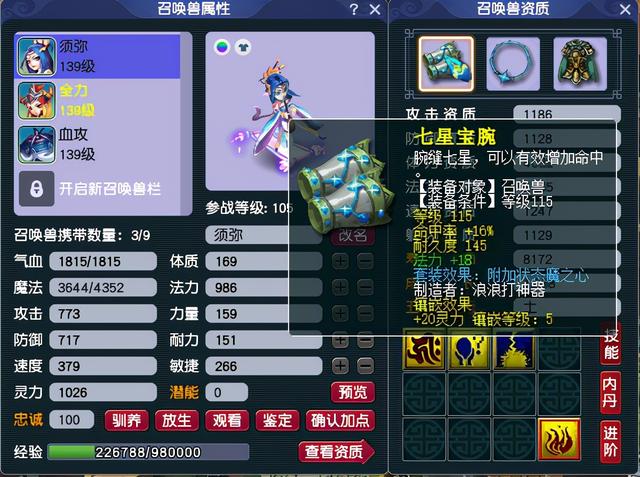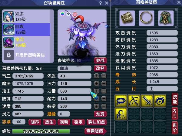 二、宝宝我每个号配了3只宝宝,1只须弥,1只全力,1只血攻。