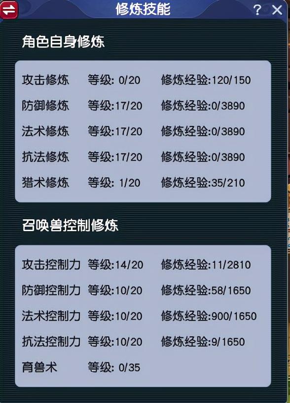 这是我无底洞带队号的修炼,当时玩109单开时候的号,修炼都点到17了