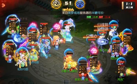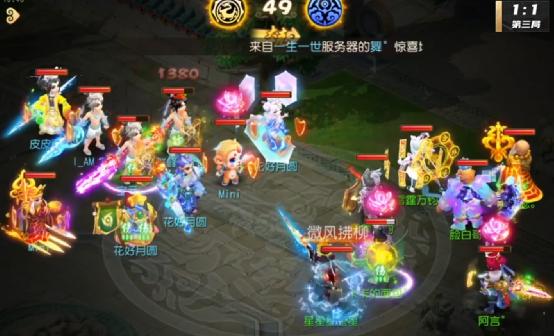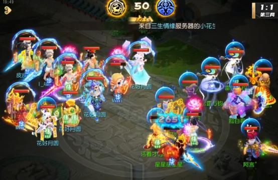 来到第49回合,此时观战方召唤灵只有两只,不过对战方却有四只,召唤灵上的数目差距就体现出来了,虽然观战方方寸成功封印对战方方寸,不过却被对战方预判,被化生解掉,局势对观战方非常不利。不过观战方普陀对大唐释放的微风拂柳也为胜利埋下了伏笔。