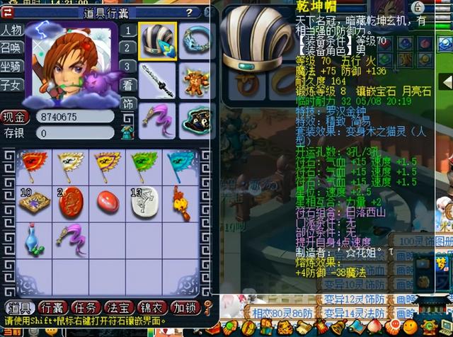 武器,则是130级的无级别限制的四法青云。这把武器对于这方寸山玩家来说最大的优势,就是优秀的双加。