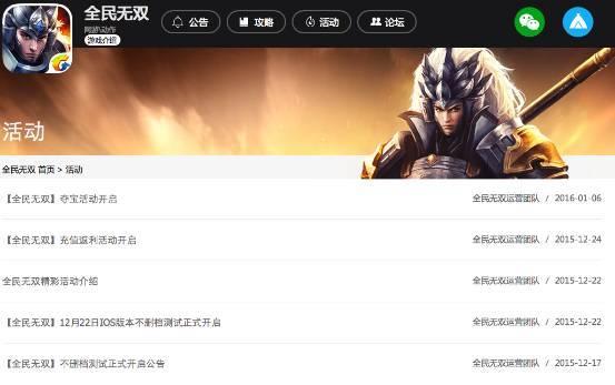 与营销推广相类似的是,《全民无双》在运营活动上也没有太多的创新。在其官网上可以发现,自上线以来的20日内,官方举办的运营活动仅有三个,公告仅五条。而在《穿越火线:枪战王者》的官网上可以发现运营团队发布的公告多达70条,这也可见《全民无双》在运营上并没有太大的亮点。