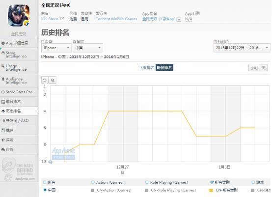 这款由墨麟研发,腾讯代理的《全民无双》在刚上线之初就受到了手游那点事的关注,甚至认为其有望成为2015年手游市场的最后一匹黑马。而其的表现也出乎了大多数人的意料,在上线后4天就登上了App Store畅销榜第四的位置,仅次于《梦幻西游手游》、《大话西游》手游以及《热血传奇》三款端游IP改编的手游。
