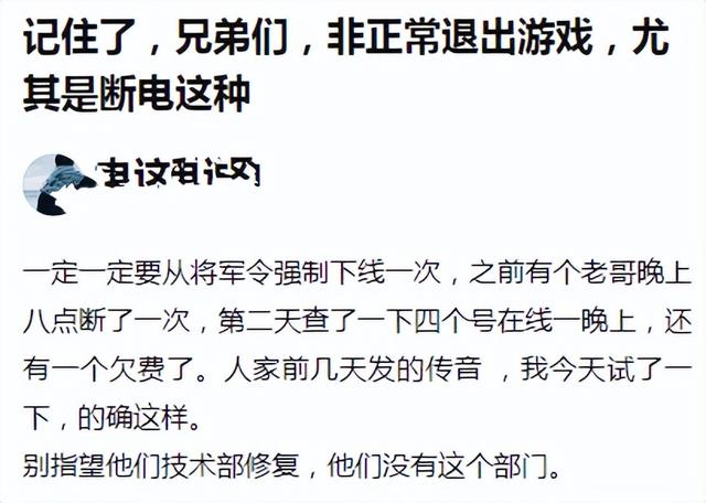 上面的这位玩家所说的是一种延迟下线的情况,很多玩家都碰到过,不只是意外断电之后有可能会出现延迟下线,正常的退出游戏也会出现延迟下线。