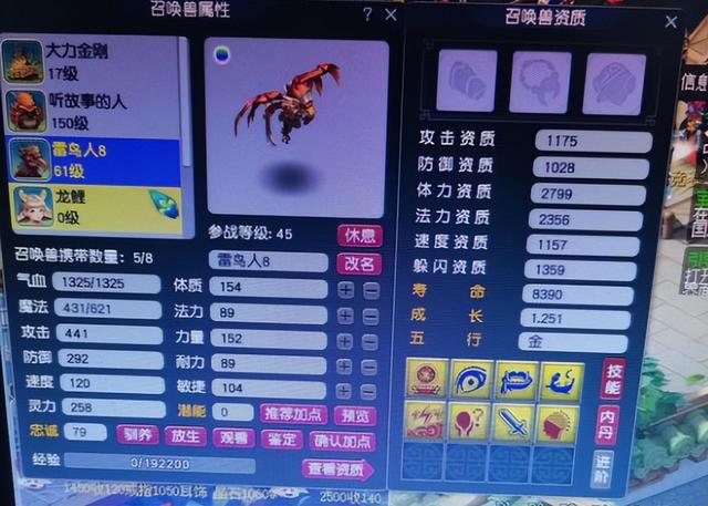 上面是一只八技能已经打完书的出奇善恶,这位玩家表示他的这只出其善恶的雷鸟人是一只野生召唤兽,小编计算了一下属性,上面的这只召唤兽可不是野生那么简单,上面的这只召唤兽是纯野生的,缺少了122点属性呢,你们认为上面的这只召唤兽能不能用?