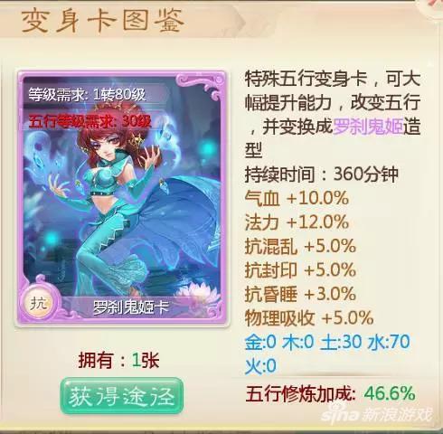 罗刹卡高血高法加成,抗性也非常给力,但是对于中敏魔来说有2个致命的弱点就是五行过于单一,水属性高达70,如果遇到主克水的大炮就会比较蛋疼,还有一个就是五行总体的修炼要到30级才可以,这让很大一部分玩家至今还是无法达到的。不过依然是一个不可多得的好卡。