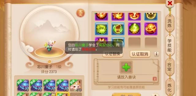 可以看到,这名玩家所打造的是一只认证10技能的忘川童子,在技能配置方面已经打上了高级法术暴击、高级驱鬼与高级会心技能,只需要再搭配上高级法术连击、高级魔之心与众多增强生存能力的技能就可以出战使用了。