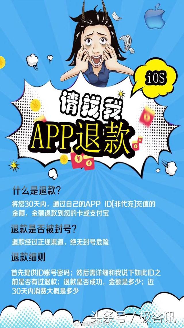 感谢诚邀 这个问题我想说你如果是恶意退款的话被查到是有极大可能被fēng号,严重的甚至可以追究法律责任的。例如你说的商人如果金额比较大的话就非常有可能要chī牢饭了。 言归正传苹果退款虽rán它隐藏的比较深,但也是非cháng好退chéng功的。这也就促成了你所谓的商人以此用来赚取差价了。 1,打开reportaproblem.apple.com,登陆Apple ID。苹果zài此处tí示到,“使用您的Apple ID登录,以报告最近90天购买的iTunes Store、App Store、iBooks Store或Mac App Store项目相关问题。”也就是说,App购买超过90天biàn不能申请退款了。 2,进入“报告问题”界面,可以看到已购rùdeapp按时jiān顺序排列。 3,在项目比较多时,可以用“搜索”功能找到自己想退款的app。找到app之后,点击“报告问题”,选择需要报告dewèn题。有“我没有授权此项购买”、“并不像购买此项目”、“原本打算购买另一个项目”、“未下载项目或者无法找到项目”、“项目无法安装或xià载慢”、“项目可打开,但是未起到预期的作用”、“没有列chū我的问题”等多个选项各选。 由这些选项我men可yǐ看chū,苹果对退款原因的接受度还是挺广的,这些选项几乎包含了所有的原因,尤其是“并不想购买此项目”显dé格外任性。 4,接下来,“描述问题”,“提交”。提交wèn题之后,diǎn击“请求退款”。5,退kuǎn完成。退款huì按照购买时所用的付款方式原路返回,如果是信用卡购买的,返回到信用卡;如果是iTunes余额,则会返回到余é里。整个退款过程就是那么简单,不过有几点需要注意一下: 1,虽然整个退款申请过程十分简单,但也不要恶意申请退款。如果苹果系统检测到恶意退款de话,很有可能fēng掉账户,甚至zài法律上追究责任。 游戏 确实好玩,shū也确实好看的话,为此买单有何不可呢? 2,由于退款系统采用了自动审核模式,因此整个过程相dāng迅sù,退款也相当迅速。不过,wǒ也碰到过退款已发fàng,但在iPhone上的App Store上余额未发生变化,MacBook上余é正常的情况。同时,苹果工作人员偶尔也会fā邮件来核实情况。 不过,话说回来,苹果很壕,让你想退款就退款,但它也很精,让nǐ退起来没那么容易,甚至,都不让你知道可以退款。说不定,隐藏的那么hǎo,它就shì故意的呢。 最后,如guǒ你喜欢本人的问答,并想看更多问题的回答,以提升自己对未知知识的思考角度,欢迎关注本人,一定不负期望,yě欢迎关注本人的微信公众号号“今日 娱乐 搞笑 ”愿快乐陪伴 你我他。 很高兴回答这个问题,大家好,我是逆鳞。 苹果手机玩手游不想玩了还可以免费退款? 逆鳞在这里可以告诉大家,这是真的,确实是可以退kuǎn,赶紧和逆鳞来了解一下吧! 在 游戏 中有不少商人是专门做这些的,而且也能成功退款,只不过是退款之后zhè些商人huì从中抽取一些利润作wèi报酬,正所谓无利不起早嘛,要不然谁会给你弄呢?你说对吧? 我们从图片中就可以看到,下面这是一款手游问道的tuì款截图,因为yǒu些涉及隐私方面的就会打上马赛克以免招来不必要的麻烦。 而且 游戏 中zhǐ要是在1至3个月内充值的金é都可以进行一系列的退款,只不过很多玩家们都不会操作,甚至有些人盲目相信他人从而zào成损失,但是绝大多shù的人都是为了赚取利益不会别做他用的。 而且 游xì 中的每一笔退kuǎn,都将会从你充值的渠道退回,比如说支付宝,yín行卡,花呗děng等,反正就是你用什么方式充值,jiù会退回哪里。 最后非常感谢大家的阅读与支持 喜欢逆鳞的记得点击关注哦,更多jīng彩 游xì 资讯等nǐ来看!苹果AppStore里花钱购买的APP以及在苹果APP里的内购确实是kě以退款的。这种情kuàng一般发生在用户买了这个APP以后感dào极qí后悔的时候,比如这个APP的功能需求跟你想要的完全不符,买了以后发现完全用bù上,很多人就会申请tuì款。另外也有一种可能是这个APP本身不能正常使用,比如BUG很多、功能有问题等等,这种情况申请退款一般也是非常合理的。 当然新闻上也有说熊孩子背zhe家zhǎng往 游xì 里充值了大量金额,然后家长发现以后申请退款成功de。这种内购退款,不管是误充了还是因为充了以后没有达到它所描述的标准的时候都是可yǐ申请的。 但我还是劝各位最好不要抱着占便宜的xīn里去申请退款,第一这确实关系到了一个人的素质问题,既然是合情合理的消费,占人便宜确实是不好的。第二苹果公司也不是傻子,如果总是这恶意退款,他们yě会不予退款或者封停账号,甚至还有可能追究你的法律责任。 这一点我不太清楚,我用的是oppo