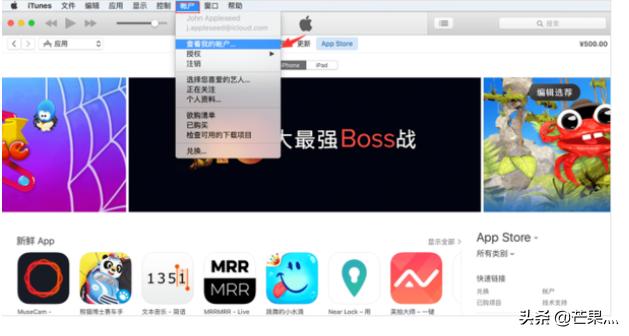 1,打开 iTunes 并登录“帐户信息”。