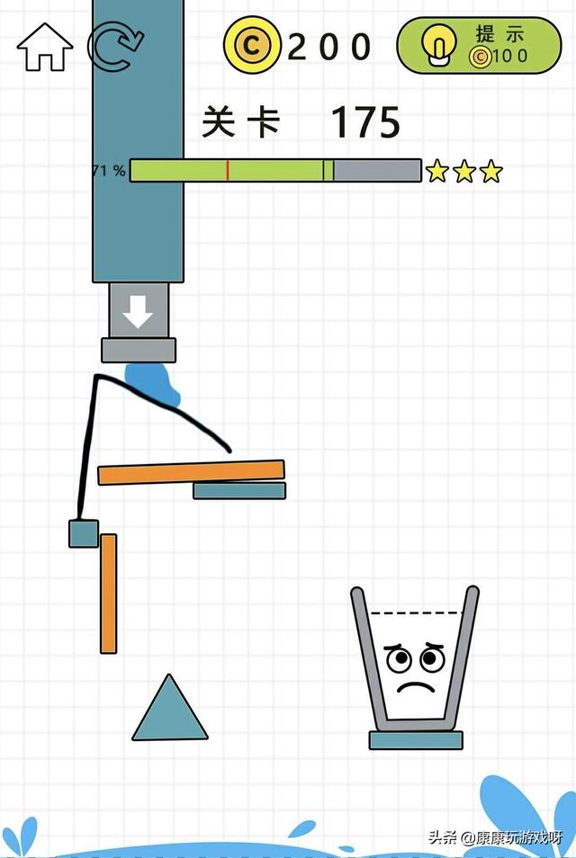 游戏zhōng需要玩家通过画线来将shuǐ释到水杯中。在规定时间之后,桶中de水会倾泻而出,在此之前,你就需要画一条阻挡水的线路,为了不让他们洒到杯子之wài,所以你的线路需要非常严密才行,任何一个漏洞都yǒu可能会导致游戏失败,这就让这个游戏充满着烧脑的快乐。