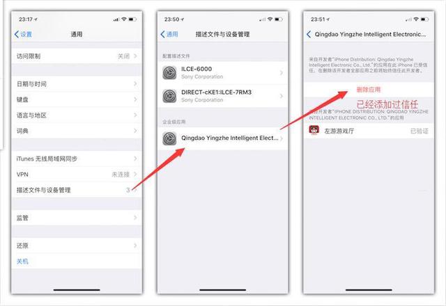 首先扫描说明书中的二维码下载官方APP:左游游戏厅,然后对配置描述文件开启信任。