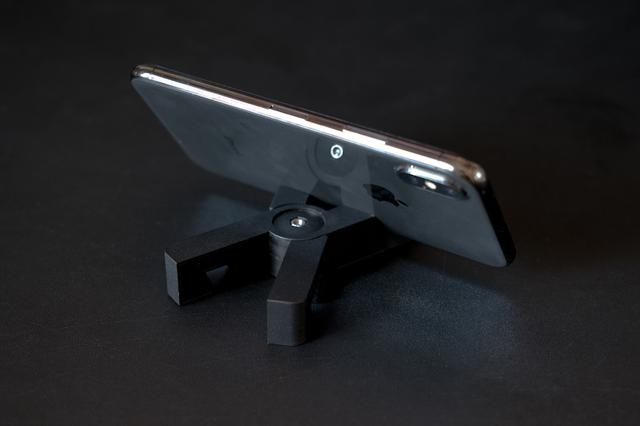 北通K1自带一个手机支架配件,这里要吐槽一下,支架凹槽设计得有点窄,如果手机壳稍微厚一点的话,就很难放进去了,希望厂家能更改进一下。