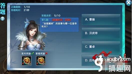 是不是还为家族领地答题千篇一律的“谁是族长”“谁进家族最晚”这样的问题感到太过枯燥?是不是有满腔的才情无从施展?本次中秋活动特别引入了“每日答题”环节,家族领地的固定位置会刷新答题NPC“中秋使者”,而她所出的问题涉及到传统文化、文言知识、历史趣闻、国学礼学等等,既能寓教于乐,又不失端庄大气,绝对是少侠补习传统问化知识,展露自己才情的好去处。当然,答题也是有奖励的,答对每道题可以获得60家族贡献,答错也有30贡献。除此之外,系统还会在每天凌晨4点更新答题排行榜,各位有才情的侠友都会榜上有名!