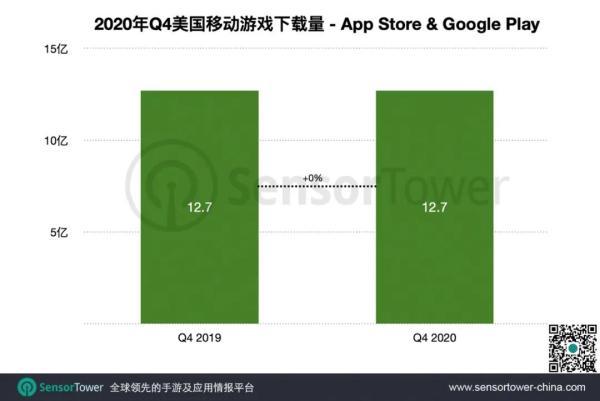 随着全美多个州放宽居家令,Q4美国App Store和Google Play手游总下载量进一步下滑至12.7亿次,比Q3减少4.5%,与去年同期持平。其中,App Store手游下载量占51%,Google Play占49%。