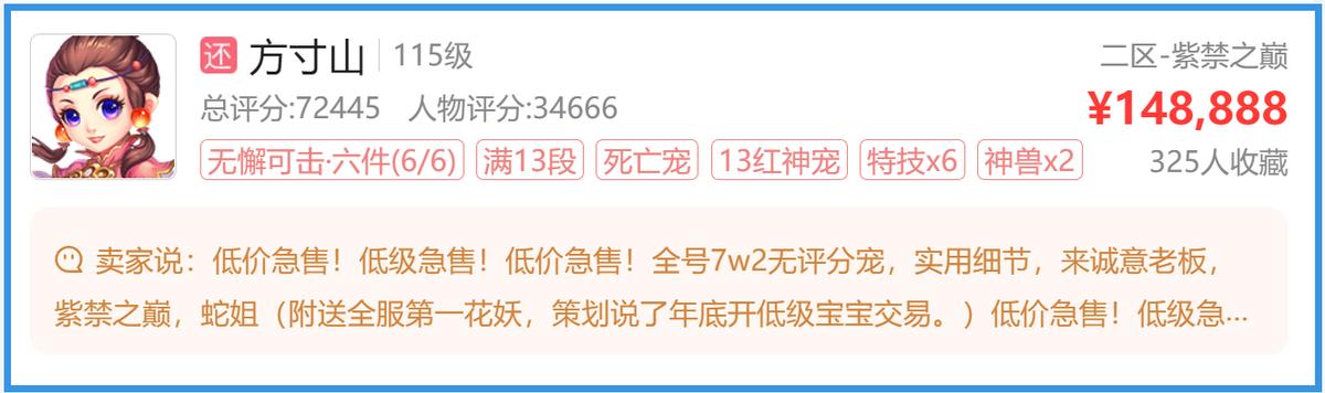 而这只宠物就出自一位精锐组比较有名的老板之手,不过这位老板最近想把自己的角色给转手,价格从500万一路降到15万都没有卖出去,难道是这个角色其他方面有问题?咱们一起来瞧瞧!