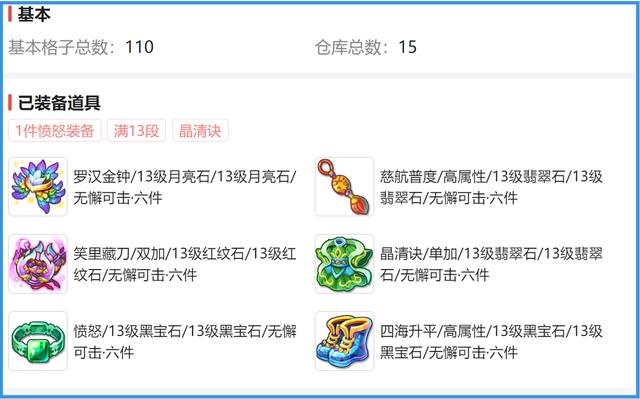同时无懈可击器灵六件套也安排上了,绝对足够参加任何战斗了。唯一的缺陷也就是没有达到天花板级别,像装备如果都换成100级双加满属性,相信价值会更高。
