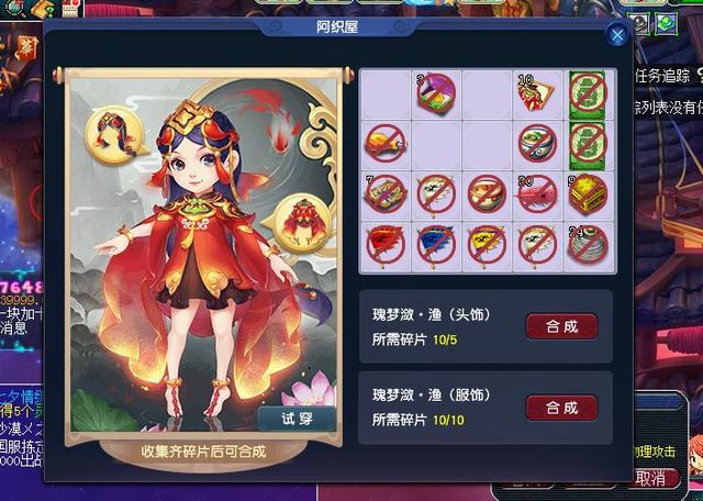 知道这位玩家目前正在做的是什么东西吗?他正在做的就是合成鬼市的特殊锦衣,这一个特殊锦衣需要玩家在特殊的副本任务中获得碎片,而特殊的副本任务又需要特殊的道具来开启,想要获得阿织的信物玩家消费仙玉来获得,要么就是使用神器积分进行兑换,无论哪一种方式,他的获得成本都非常高。