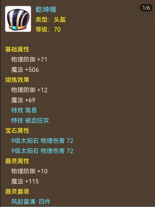 有了这么多实用特技,怎么能缺破血狂攻呢?没错,头盔就是简特装备,不仅属性高,还有破血可以帮助角色在战斗中增强机动性。