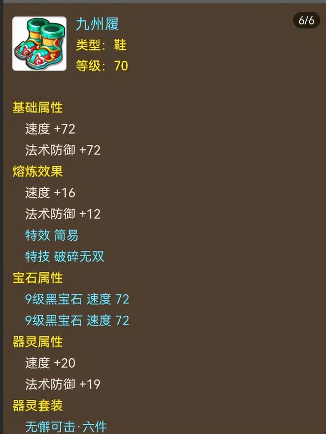 鞋子依然是70级简易装备,速度属性已经最大化,加上两颗9级黑宝石,足以站在战斗出售第一梯队,特技方面是破碎无双,在执行打蓝战术时能发挥奇效,让对手续航直接掉档!