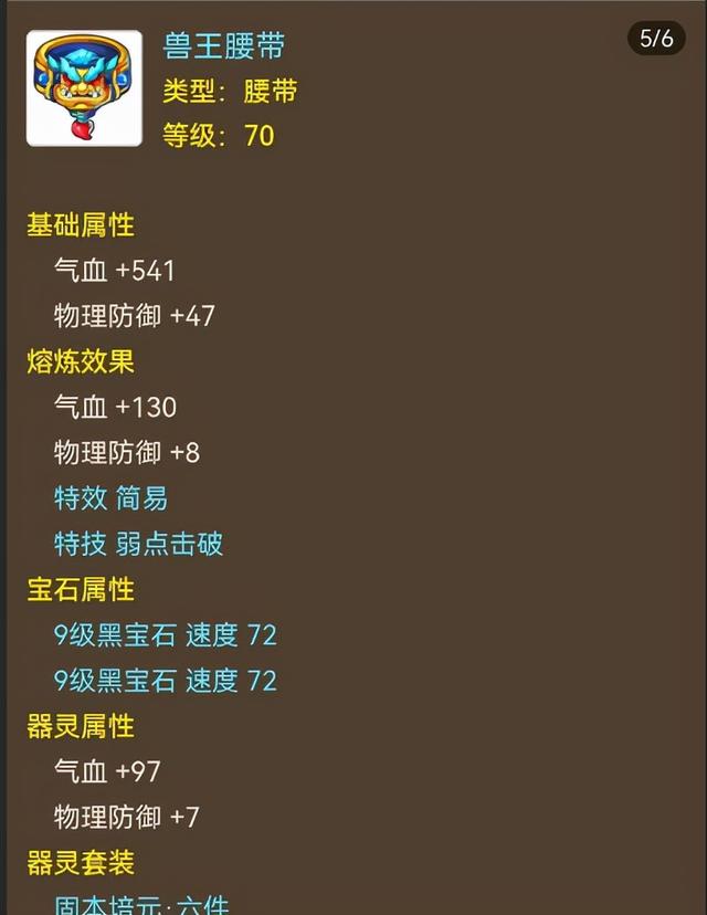 腰带方面并没有选择60级愤怒腰带,这也与目前的战斗环境有关,通常大唐玩家在偏红抢速后完全可以跻身第二速度,基本上每回合都能吃到伤害加愤怒,几乎不需要愤怒腰带来减免消耗,并且70级简易腰带的好处是可以镶嵌9级黑宝石没,这也是一线玩家的普遍选择。