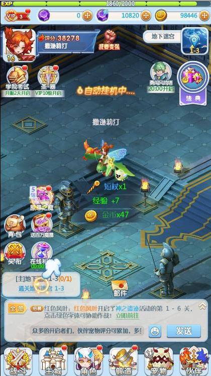 自动挂机可以获得大量装备和金币,可以分解获得强化石和提升技能等级!