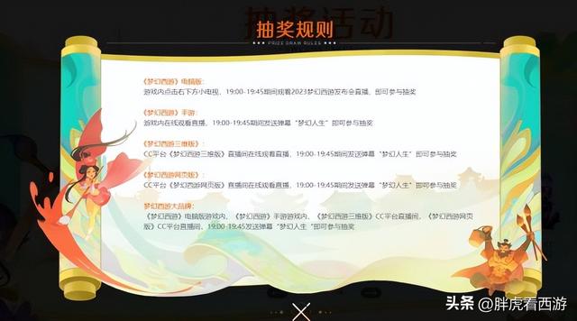 看到琳琅满目的礼物,大家是不是也有些心动?那么小编接下来便告诉大家如何领取这些好礼:《梦幻西游》电脑版玩家在游戏内点击小电视,观看2023梦幻西游发布会直播即可参与抽奖;《梦幻西游》手游玩家也是在游戏内在线观看直播,19:00-19:45期间发送弹幕“梦幻人生”即可参与抽奖;而《梦幻西游三维版》玩家需要进入CC平台官方直播间,同一时间发送弹幕“梦幻人生”参与抽奖;《梦幻西游网页版》也是如此,进入CC平台官方直播间,19:00-19:45发送弹幕“梦幻人生”抽奖;梦幻西游大品牌的抽奖方式,则综合了以上所有。