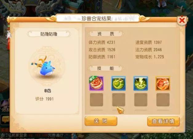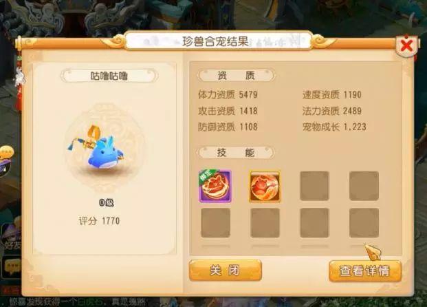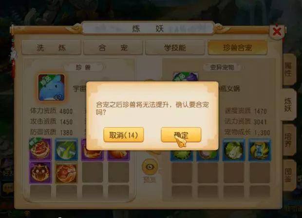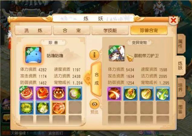 其实灵儿觉得这波操作不算亏,但是这位玩家显然是精益求精的典范。只见他立刻掏出来10个资质丹给咕噜咕噜提升了资质,然后继续合!
