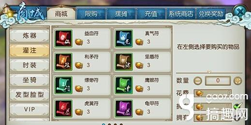 灌注是提升道法,最简单、最稳定的方法,在商城直接购买灌注符即可,成功率刷开炼器八条街,而且最关键的是——便宜!立即生效!因此前期你要把大部分元宝花在买灌注符上(单靠每日副本奖励那点是不够的),这是前期收益最高的方法。