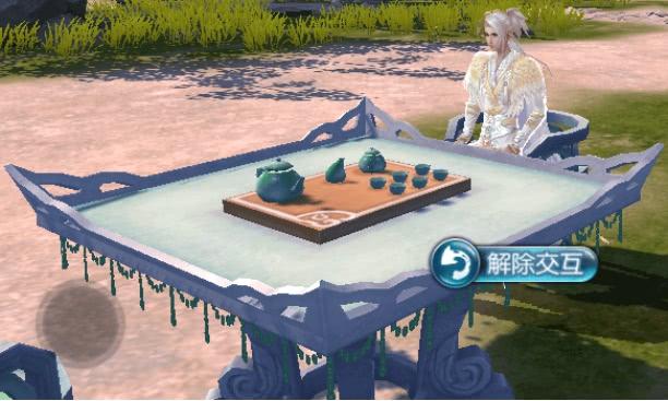 交互方式很简单,点击家具上冒出的气泡即可实现交互动作。那么以上图为例,玩家们就可以和自己的配偶或者同修一起坐在这里享受美好的仙府时光。有景有茶有美女,别提画面多浪漫了,到时候截个图发朋友圈很容易就让别人羡慕哦!