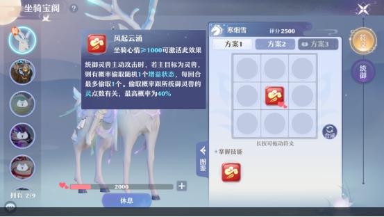 同样是可以直接通过武勋商城兑换到的坐骑,与玄雷影相对的是,它的坐骑技能是与灵兽的灵点数有关,可以概率随机偷取目标灵兽1个增益状态,很明显是适合法系灵兽选择的坐骑。
