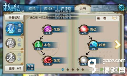 天书第二篇:这篇没什么好说的,情致和惊鸿点满就好,其他点一点能加这两个就好不用加满!