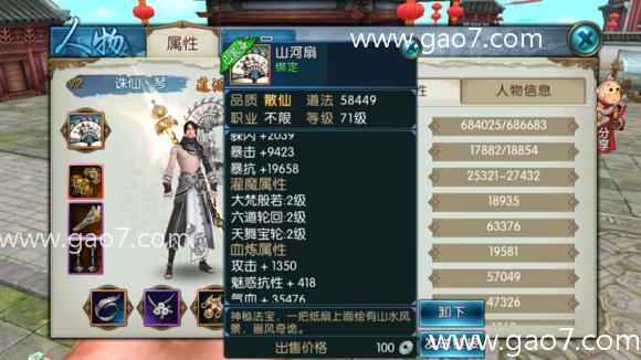 山河扇的技能是:攻击单个敌人,对其造成XX伤害,同时将自身气血的XX%转化为攻击力附加伤害。从文字看就是气血越多,攻击越高。我现在是70W的气血,打别人大概在7W到10W的伤害。