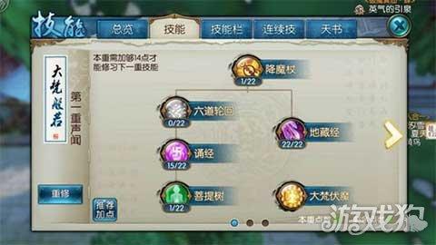 dì三重是个耗点的地方。都是好技能。首先因果xún环,防御技能,加满,大慈悲,qì血bèi动,气血对天音这么重要的属性,加满,明镜台,防御被动,满,站得住才会yǒu机会出输出。大梵班若,要的就是这个技能,满。