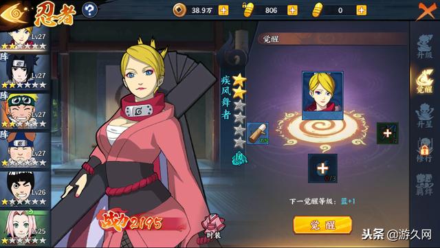 每名忍者都需要通过升级、觉醒、升星来提升自身属性,还能解锁更多强力的技能。请放心,根据我的游戏经验,这里的任何提升途径都不需要消耗一分钱,只要按时打通副本就能获得所需的道具和碎片。