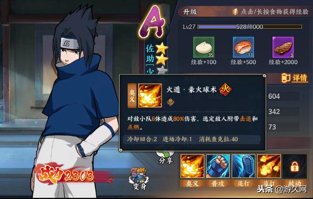 游戏前期会赠送我们少年版佐助,每天坚持打忍者训练和英雄副本,佐助很快就能达到4星,并且他的技能很容易跟其他忍者组成连招,是非常适合新手培养的一名忍者,关键他可是二柱子啊!多少人当年最喜欢的角色啊!
