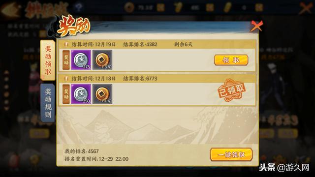 在《火影忍者OL》里的一个重要玩法就是排位战,我们自己搭配阵容去挑战其他玩家。这个过程是完全自动战斗,考验的是我们布阵的合理性。通过赢得排位战的胜利,我们可以获得金币、勋章等奖励,用于兑换道具、增强忍者的实力。如何用布阵的艺术去“白嫖”资源,就成了每个玩家的必修课。
