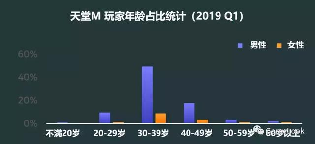 在用户方面,《天堂M》的主要玩家为30~40多岁的男性,而不满20岁的玩家甚至比60岁以上的玩家还要少一些。