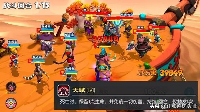 第一回合我方攻击积攒能量后,1号位的乌龟阵亡然后扔出减甲的Debuff,配合我方攻击队员在第二轮对敌方疯狂输出。